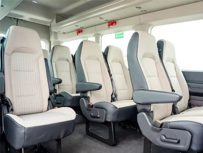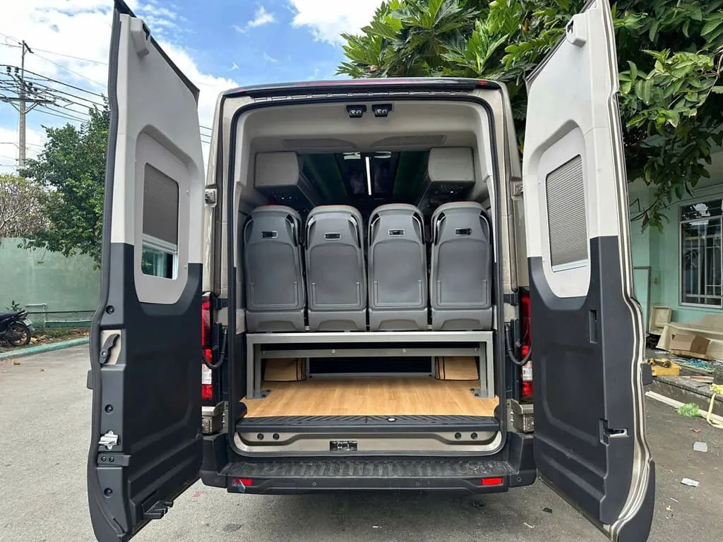 Xe có máy lạnh mạnh, ghế ngả êm ái, cửa sổ rộng ngắm cảnh, phù hợp cho nhóm 10–15 người muốn có không gian riêng thoải mái.